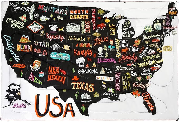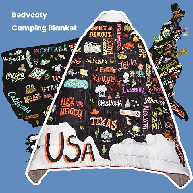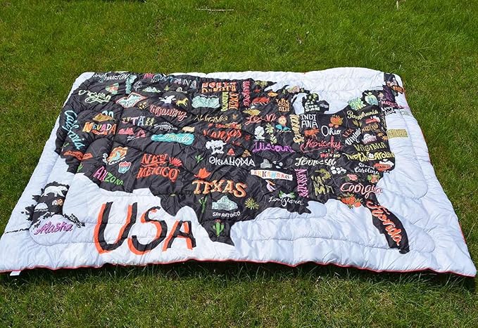 Camping Blanket, Puffy Waterproof Travel Blanket, Warm Cozy Picnic Blanket, for Outdoors, Travel, and Mountain.(Map, 78" x 56")
