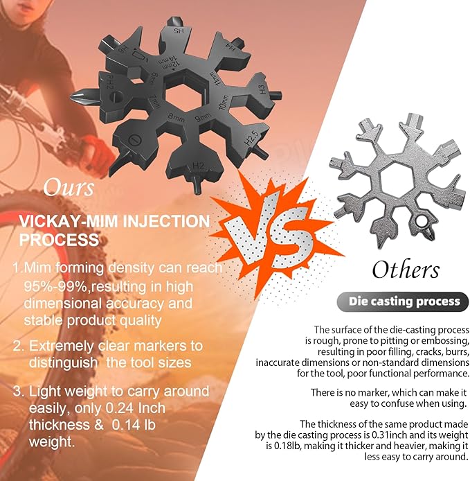 - 【Unique Snowflake-Shaped Design】The Vickay multi-tool features an eye-catching snowflake shape that combines functionality with style.