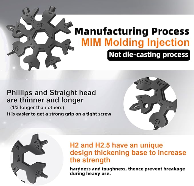 - 【Durable and Corrosion-Resistant】with MIM injection molding process and high-quality stainless steel, this snowflake multitool is polished, rounded, and durable. It's also corrosion-resistant, so it won't rust easily. It's a great gift for DIY handymen, dads, or anyone who loves cool gadgets.