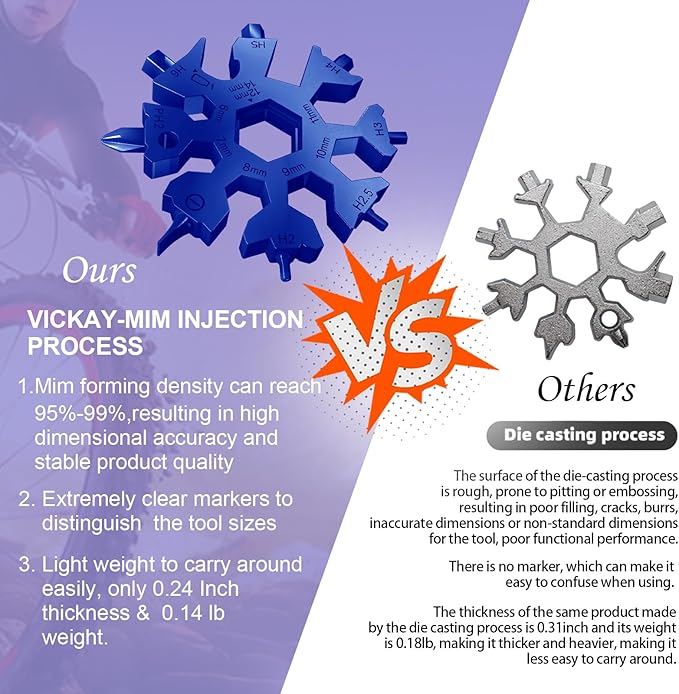 - 【Durable and Corrosion-Resistant】with MIM injection molding process and high-quality stainless steel, this snowflake multitool is polished, rounded, and durable. It's also corrosion-resistant, so it won't rust easily. It's a great gift for DIY handymen, dads, or anyone who loves cool gadgets.