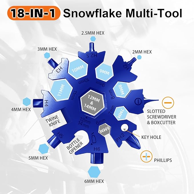 - 【Gifts for Dad】Give your dad a unique and useful gift with this 18-in-1 snowflake multitool. It's a cool gadget that can be hung on a keyring, backpack, or even on the Christmas tree. Plus, it's a great toy for boys too!