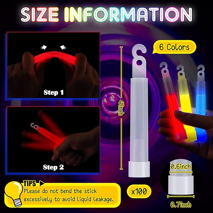 - Sufficient Quantity: you will receive 100 emergency light glow sticks, about 4 inches/ 10 cm in length, enough for you to share with your partners; Note that the colorful light sticks are orange before they are glowing; When you activate these light sticks, the light sticks will emit colorful light