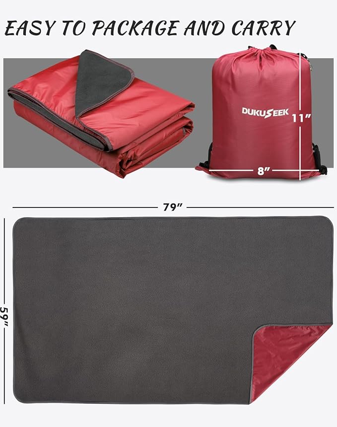 DUKUSEEK Camping Blankets for Cold Weather, Waterproof Blankets for Adult, Large (79"x 59"), Portable, Wearable, Warm for Outdoor Camping, Picnic, Stadium, Sports, Beach, Concerts, Car, Dogs, Travel