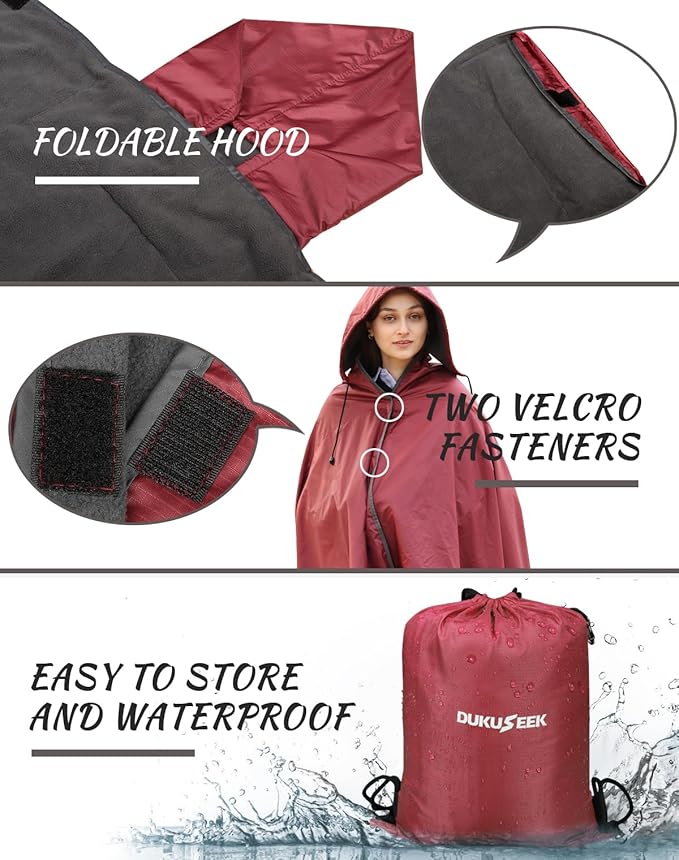 - ✅ 𝗦𝗧𝗔𝗗𝗜𝗨𝗠 𝗕𝗟𝗔𝗡𝗞𝗘𝗧 𝗪𝗜𝗧𝗛 𝗨𝗡𝗜𝗤𝗨𝗘 𝗛𝗢𝗢𝗗𝗘𝗗 𝗗𝗘𝗦𝗜𝗚𝗡:The DUKUSEEK outdoor waterproof stadium blanket for cold weather has an adjustable hood, which can be easily unfolded and converted into a poncho and cloak in rainy days. And it comes with a stuff sack for easy carrying and storage.