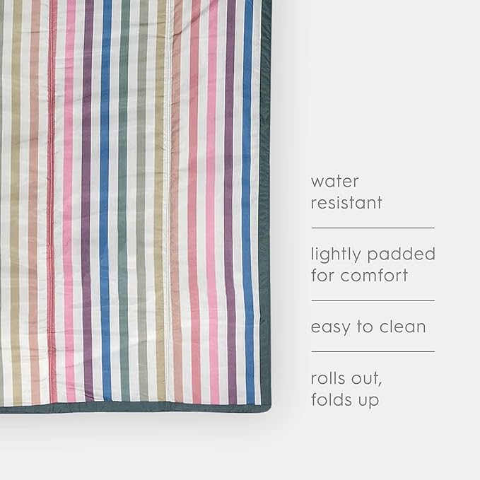 Little Unicorn 5'x7' Outdoor Family Picnic & Beach Blanket | Durable & Water-Resistant Fabric | Compact Fold & Easily Wipes Clean | Zipper Pocket (Chroma Rugby Stripe)