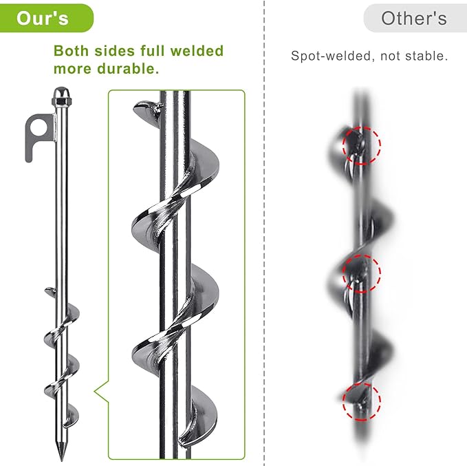 - 【Easy to Install and Remove】You can easily screw these spiral anchor into the ground with a drill and screw them out again when you don’t need them. You can install them in a few minutes, saving your time and effort.