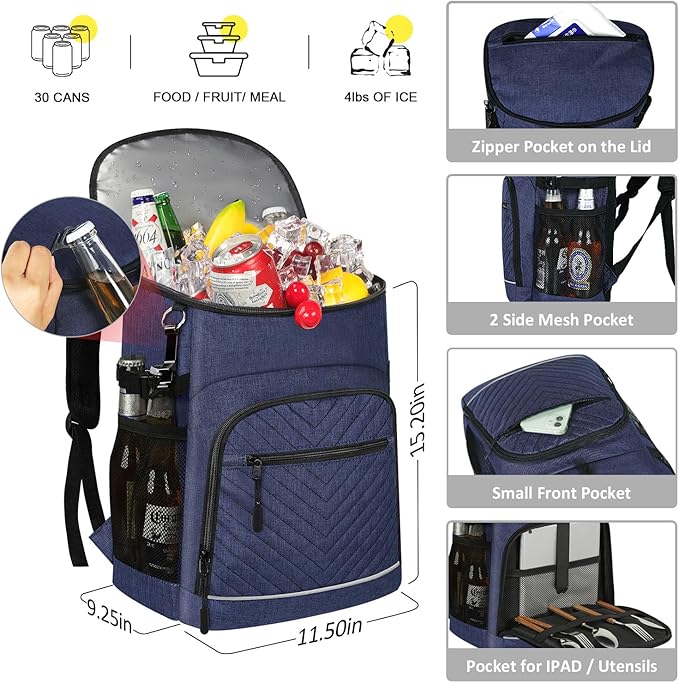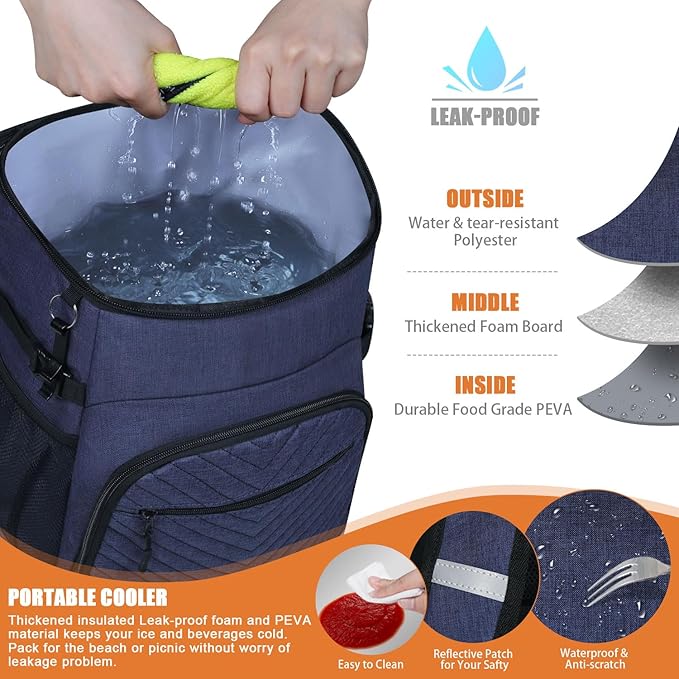 - 【No Leakage Problem】Unlike traditional cooler bags, our insulated cooler backpacks are lined with upgraded thickened PEVA material, combined with seamless hot pressing technology to avoid leakage problems. Leak proof liner ensure that you can bring this lightweight backpack anywhere you want with ice, beers and drinks in it, mess free.