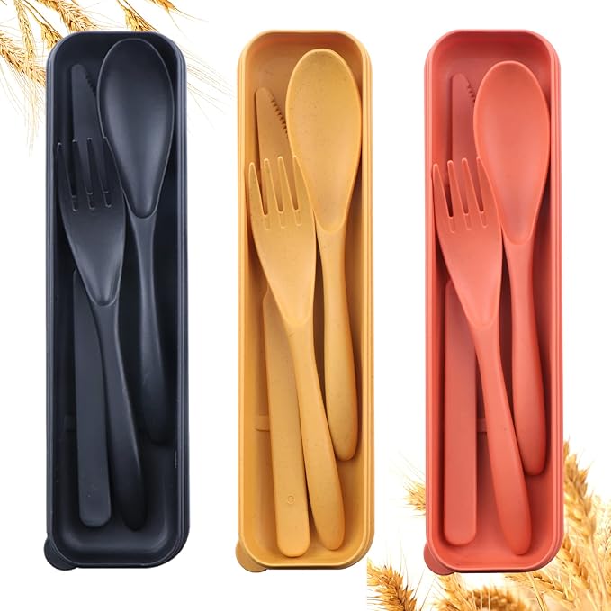 - WIDELY USED - Wheat straw material is more lightweight to carry, you can easy to put them in bento box, backpacks and other bags. In addition to daily use, the portable dinnerware sets are also perfect for camping, travel, picnic and working lunch.