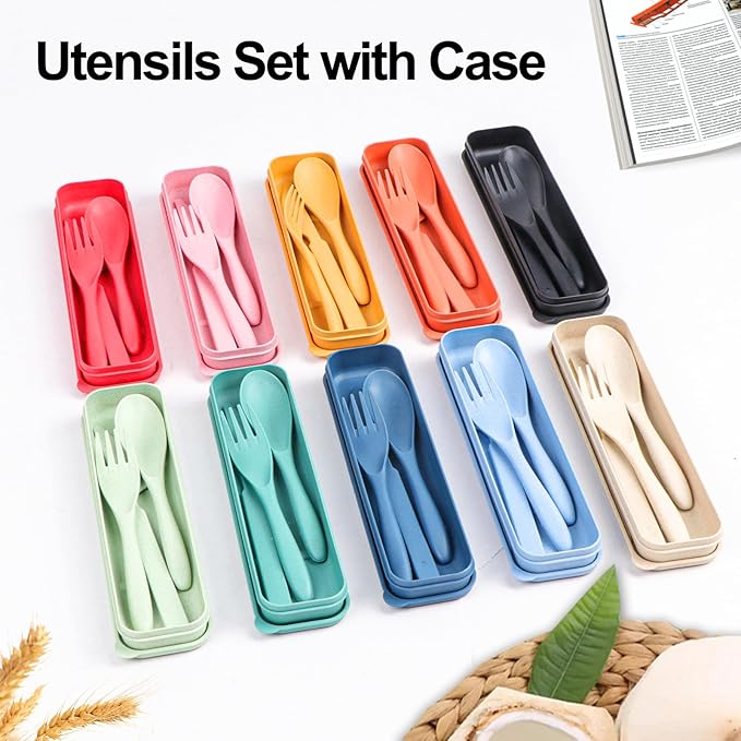 - WIDELY USED - Wheat straw material is more lightweight to carry, you can easy to put them in bento box, backpacks and other bags. In addition to daily use, the portable dinnerware sets are also perfect for camping, travel, picnic and working lunch.