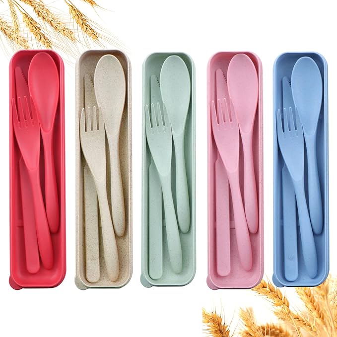 - WIDELY USED - Wheat straw material is more lightweight to carry, you can easy to put them in bento box, backpacks and other bags. In addition to daily use, the portable dinnerware sets are also perfect for camping, travel, picnic and working lunch.