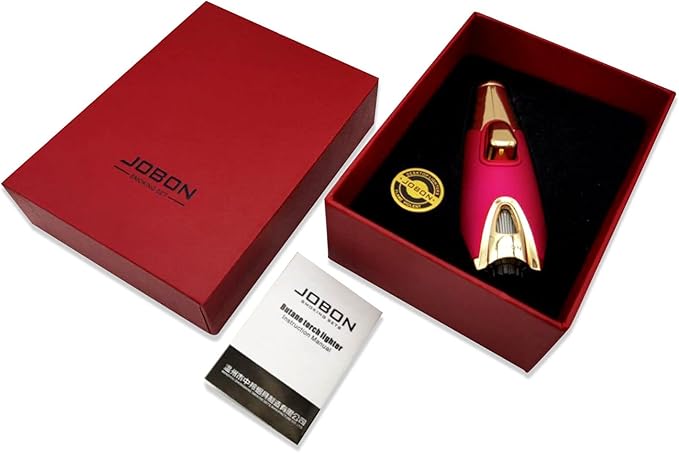JOBON Pocket Torch Lighter, Gift Idea (Butane Free), Professional Reusable Single Jet Flame Gas Lighter, Kitchen BBQ Camping Candle (Pink)