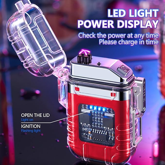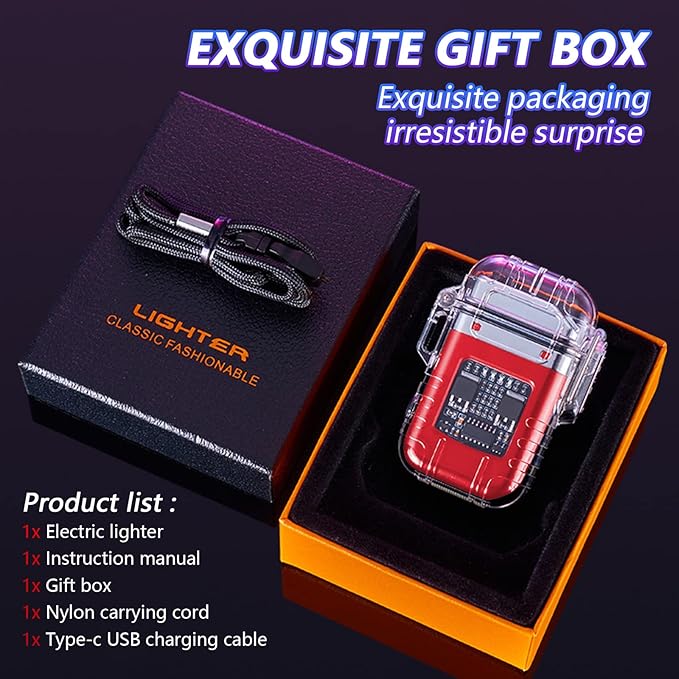 - ✨【Waterproof design】The usb rechargeable lighter has a quadruple waterproof design with two sealing rubber rings, metal-ring sealed lighter cover and locking clasp, which can be effectively waterproof when all fastened.