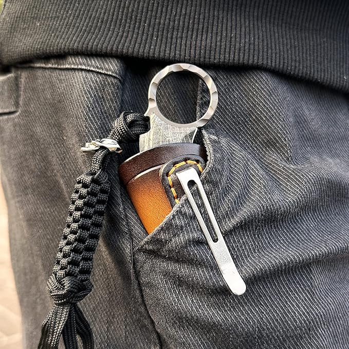 - 【Easy to carry】: The weight is 4.7 ounces, with a leather sheath at the head, which is made by hand. The stainless steel pocket clip design at the back is compact and practical. It can be easily carried just by folding it up and putting it into the pocket