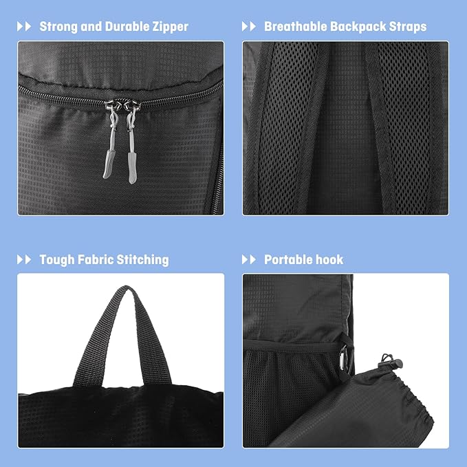 - 【Lightweight and Foldable】-This back pack weighing only 0.35 pounds,half the weight of a regular hiking backpack,it's incredibly lightweight. Folded down to the size of your hand, it even fits in your pocket, making it easy to carry.