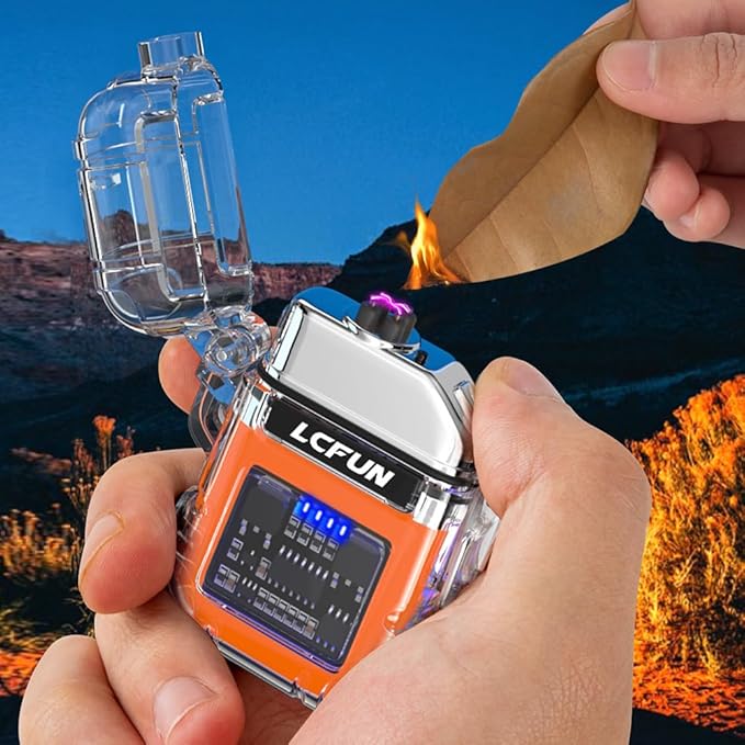 LcFun USB C Electric Lighter, Rechargeable Lighter, Windproof Plasma Lighters, Dual Arc Lighter with Battery Display & Flashlight, Waterproof Lighter for Camping, Survival, Hiking, Candle