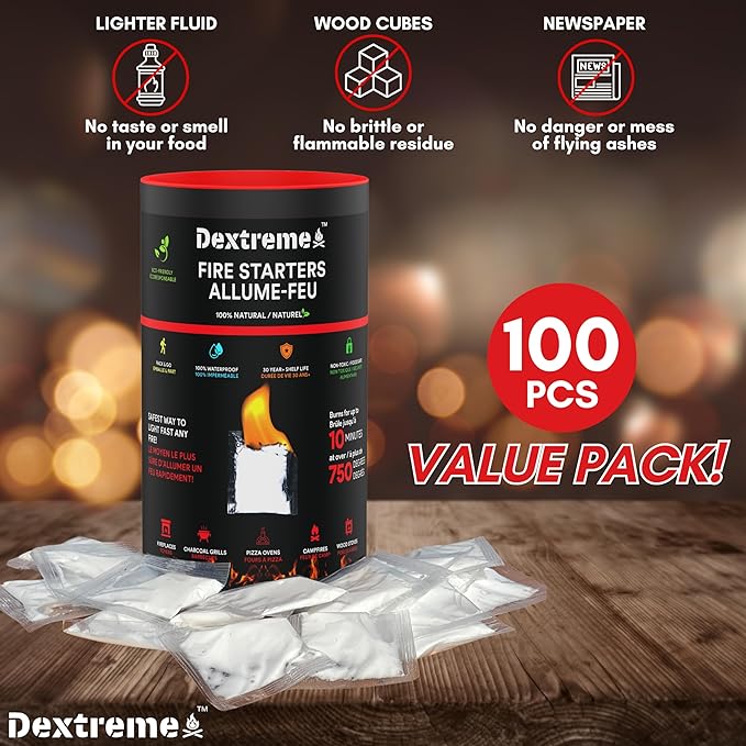 - NO ODOR, NO SMELL, NO CHEMICALS, NON TOXIC – Dextreme fire starter is a proprietary blend of all-natural paraffin wax which are safe and efficient, no harmful substances or unpleasant odor, safe for indoor or outdoor use