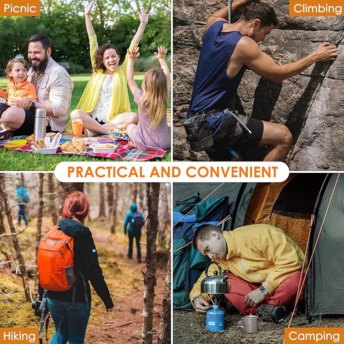 - 【Practical & Convenient】: Camping cup pulls the triangle lid, works well, and stays relatively cool even after you turn off the gas after a boil. smallest titanium pot that will still fit a 100gm gas canister inside of the pot. The lid sits on top with handy vent holes to watch for boiling conditions.