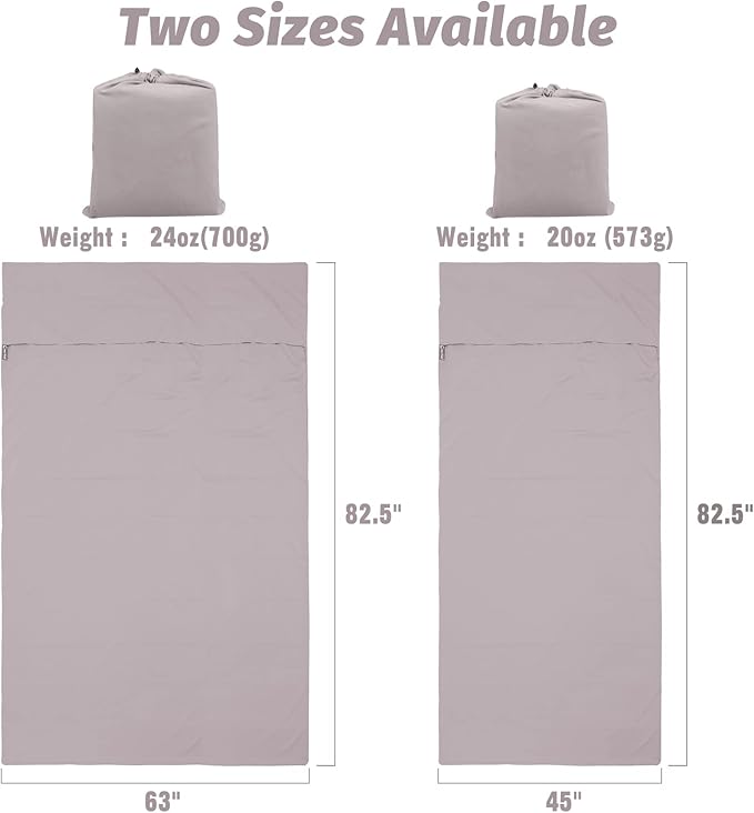 • ♥【Two Sizes Available】The sleeping bag liner has two sizes for your choose. Single 45"x 82.5" that fits one people, Double 60"x 82.5" that fits two people. The space is large enough even for different people to move around and stretch out the legs.