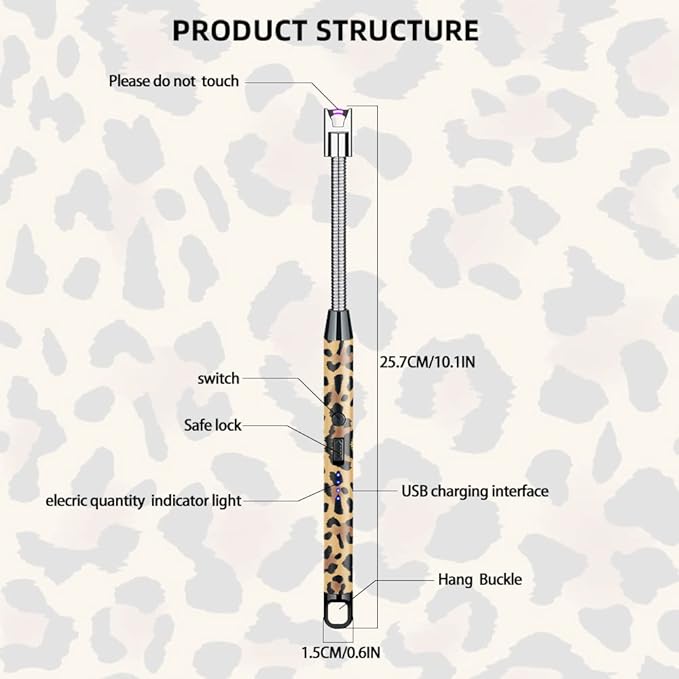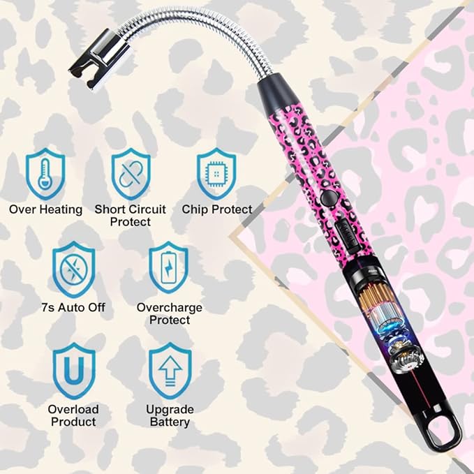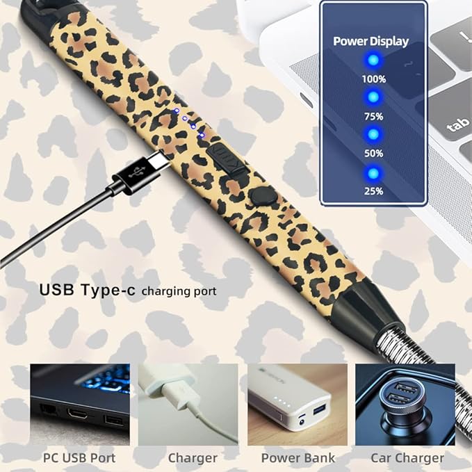 2 Pack Candle Lighter,Arc Lighter with USB Charging,Flameless Windproof,LED Battery Display,Safety Switch,Rotate 360 Degrees,for Aromatherapy,Candles,BBQ,Camping. (Leopard Print)
