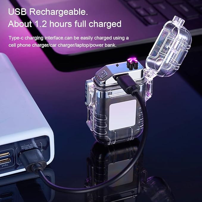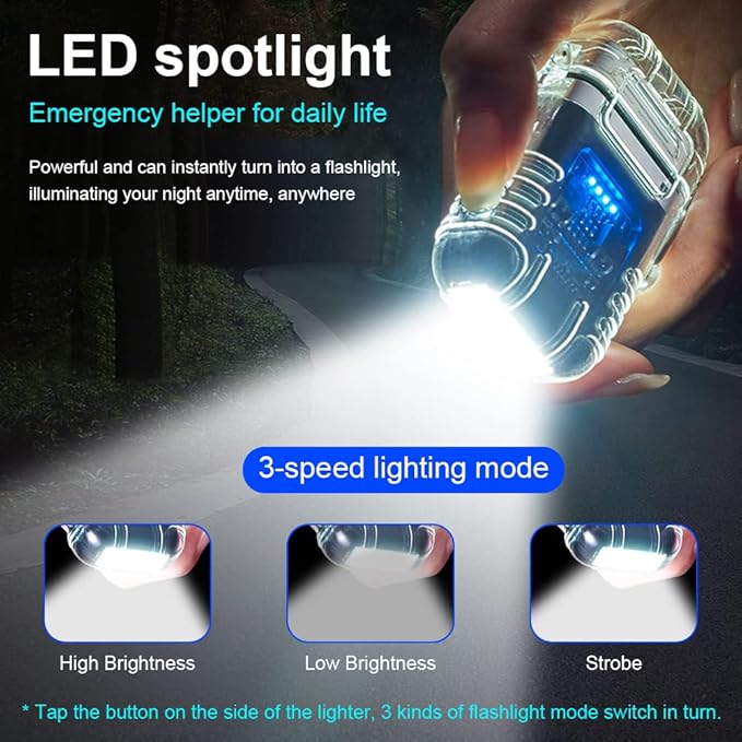 - 【Multi-Functional Design with LED Flashlight】 - This waterproof and dustproof lighter features a multi-functional design that includes a built-in LED flashlight with three different lighting modes. Whether you're camping,hiking,fishing climbing or simply need a reliable light source.IP56 grade system,with waterproof safety buckle and lanyard.This electric lighter has got you covered.