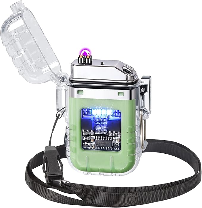 - 【Dual-Arc Ignition for Efficient and Reliable Use】 - Transparent shell design,bring a different sense of technology.The strong case resistant to fall and wear, making it more durable to use.With a powerful dual-arc ignition,this upgraded lighter offers a more efficient and reliable way to light up in any weather conditions. The strong and thick flame is windproof and capable of igniting quickly, even in harsh outdoor environments.