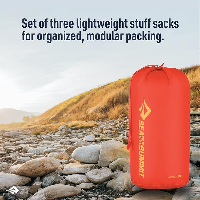 - Set of durable, lightweight stuff sacks for organized modular packing of gear and clothing in a backpack, suitcase, or duffle, for any outdoor or travel adventure