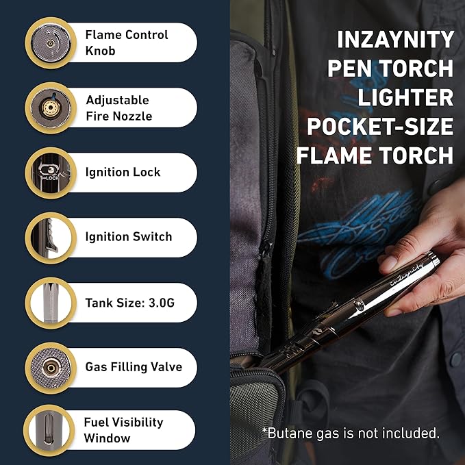 - Ignite Everyone’s Passion: Support your friends and family’s interests with our gift-ready torch lighters. No need to search for gift wraps, as each butane torch pen comes in a classy black box with "inZaynity" engraved on the lid.