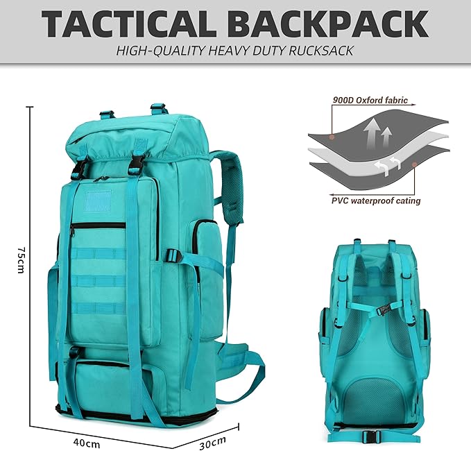 - 【Hiking Backpack】: This waterproof and lightweight trekking backpack measures 15 * 8.5 * 30 inches, the trekking backpack only weighs 3.5 pounds, it will not increase your travel burden. Military large capacity high quality durable backpack for camping, hiking, hunting, mountaineering. It can replace a suitcase.