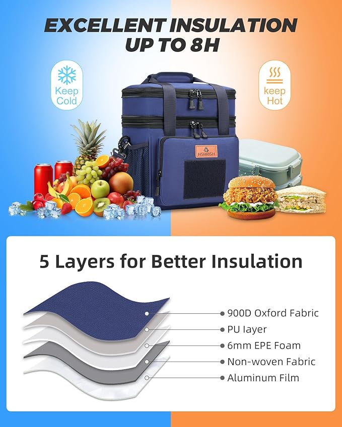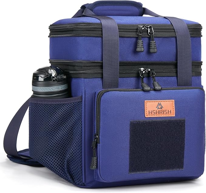 HSHRISH Expandable Large Tactical Lunch Box for Adults, Durable Insulated Lunch Bags with Shoulder Strap, Cooler Bag for Men Women Work Outdoor Picnic Trips,Blue
