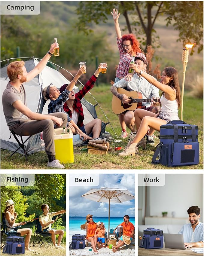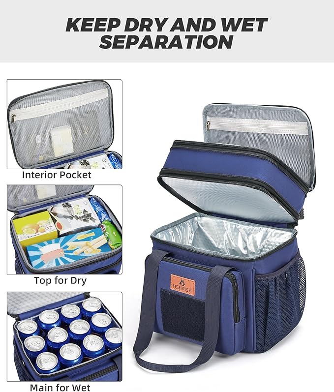 - Large Capacity with Dual Compartment- Maximum size is 16L, fits 20 Cans of soda(330ml). 2 Insulated compartments for different uses, the top compartment of the insulated lunch bag is expandable, increasing the capacity by 4L. Normal size with 12L, handy to use for work, day trips, beaching, picnic, hiking, camping, and so on.