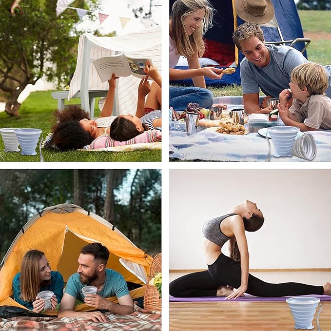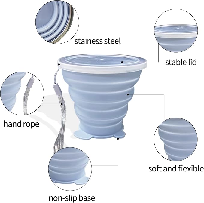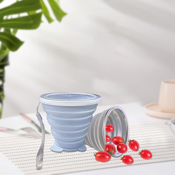 - Collapsible Cup, Silicone Collapsible Travel Cup, Expandable Folding Camping Drinking Cup with Lids Reusable Small Portable Mugs Cup for Travel, Camping, Hiking, Beach, Holiday Vacation, Outdoor Sports