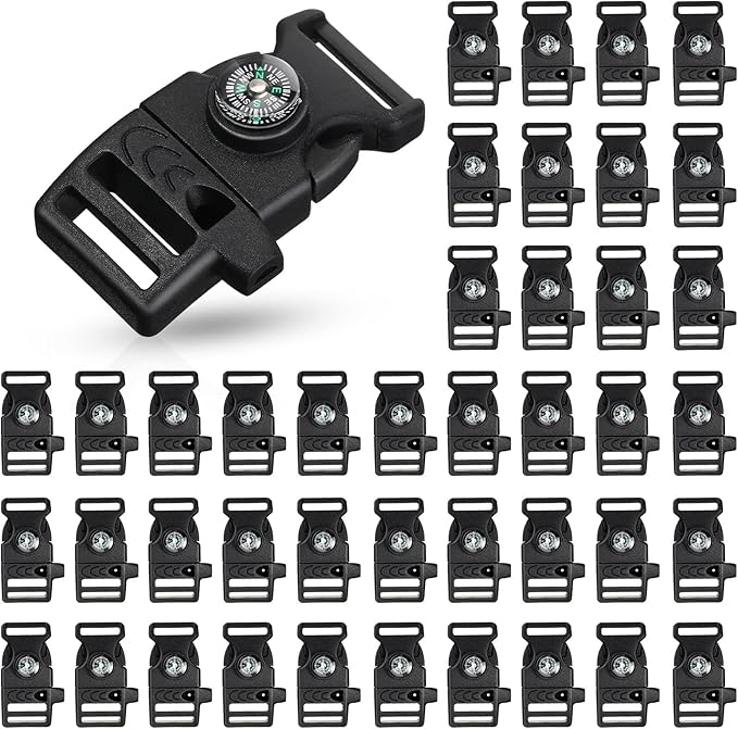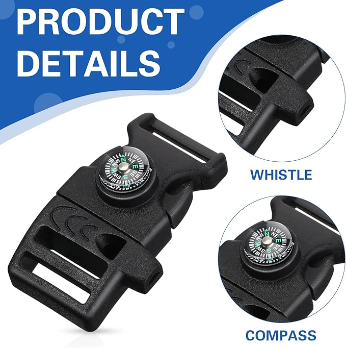 Jexine 50 Pcs Compass Buckle Clips Plastic Paracord Buckles Bracelets Accessories for Camping Travel Emergency Survival