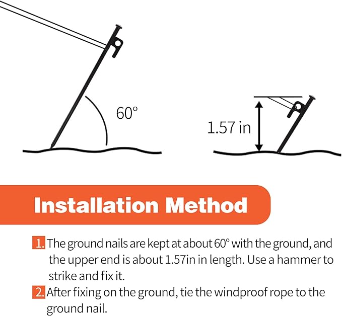 - 【Multifunctional Hammer Head】- The hammer head is made of forged high-carbon steel, which can quickly hammer nails into the ground. And the olecranon hook can pull out the tent stakes easily from the ground.