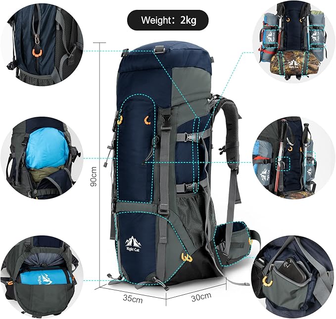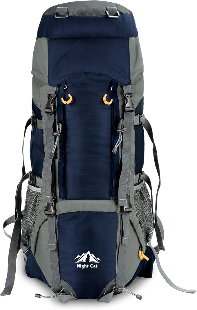 Night Cat Camping Backpacks 90L with Internal Frame Hiking Backpack for Men Women Waterproof Lightweight Breathable Outdoor Mountaineering Traveling