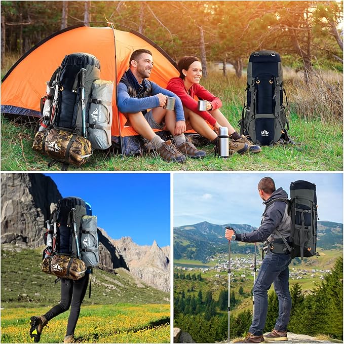 - 【Waterproof with Rain Cover】This waterproof camping backpack comes with an extra rain cover and waterproof bag included in the package,keep the goods dry in backpack, no worry about raining during outdoor