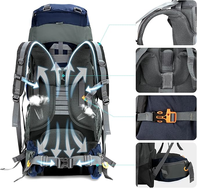 - 【Internal Frame & Ergonomic Design】Internal Frame back, widen and thicken sponge padding shoulder straps,waist belt help to relieve your burden.Breathable mesh padded with durable open-cell foam on the ergonomic back panel offer better ventilation to dissipate heat and give you more comfortable feeling