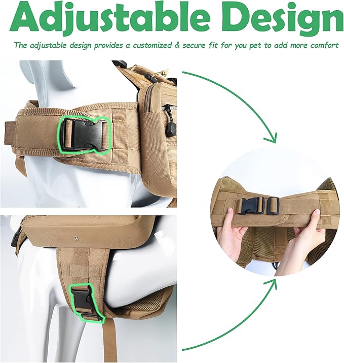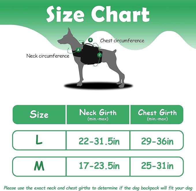 - 【Adjustable size】Our dog harness backpack is designed with adjustable sizing, allowing you to achieve a proper fit and keep the pack securely in place. The adjustable straps are suitable for different breeds and sizes of dogs, accommodating neck sizes ranging from 21 to 31.5 inches and chest sizes from 29 to 36 inches