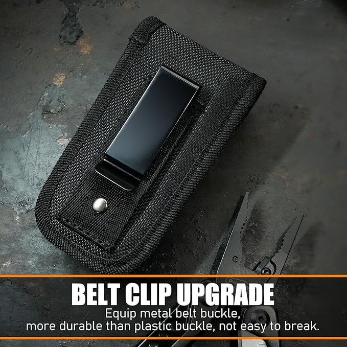 - 【CONTINUOUS OPTIMIZATION】We are humbly receptive to any suggestions from our supporters. The back buckle of the multitool sheath had been improved to premium stainless steel to prevent the back buckle from breaking. Thus, your beloved pliers will not be accidentally lost