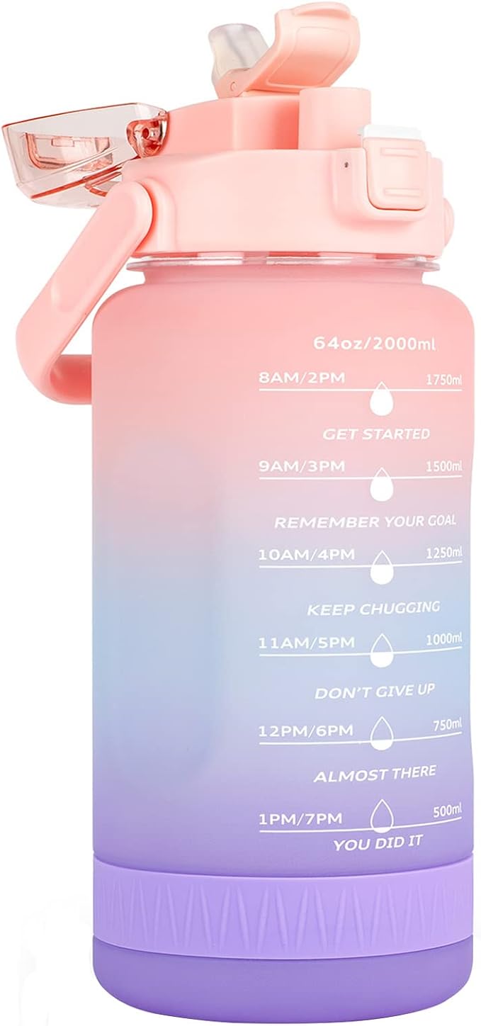 - Large 64oz Capacity: The half-gallon water bottle has a large 64oz capacity to keep you hydrated throughout the day.