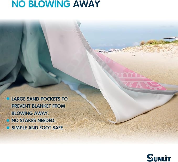 - [ Stay Anchored ] - Instead of being anchored by anchor stakes there are four built-in corner pockets that prevent the blanket from blowing away, just fill these pockets with sand to weigh down the blanket.