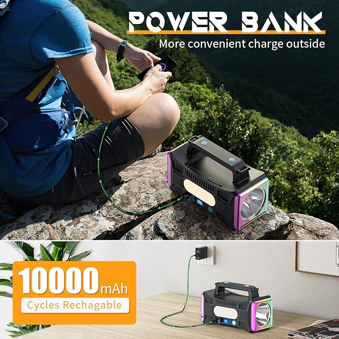 - 🏆【Strong Electrical Energy Reserves and Outdoor Power Bank】Built-in 10000mAh high capacity rechargeable battery allows 10-50 hours of battery life; 0-100% battery remaining display making you prepared; It can also serve as an outdoor power bank to charge your phone, making it an essential helper for your travel.