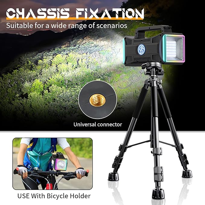 - 🏆【Portable Spotlight Flashlight】 The packaging includes a shoulder strap, which can save you effort when working in the field. The bottom of the lamp has a universal tripod screw hole, which can fix the lamp and is also a necessary good tool for families.