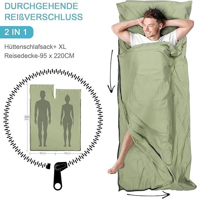 - PERFECTLY SIZED - Immerse yourself in comfort with our thoughtfully designed liner. Measuring an impressive 86.6 inches (220cm) in length and 37.4 inches (95cm) in width, it offers ample room for even taller individuals without excess material that would make you uncomfortable. To top it off, we’ve included a pillow pocket for added convenience. When traveling, slide in your own pillow for a more hygienic and comfortable slumber.