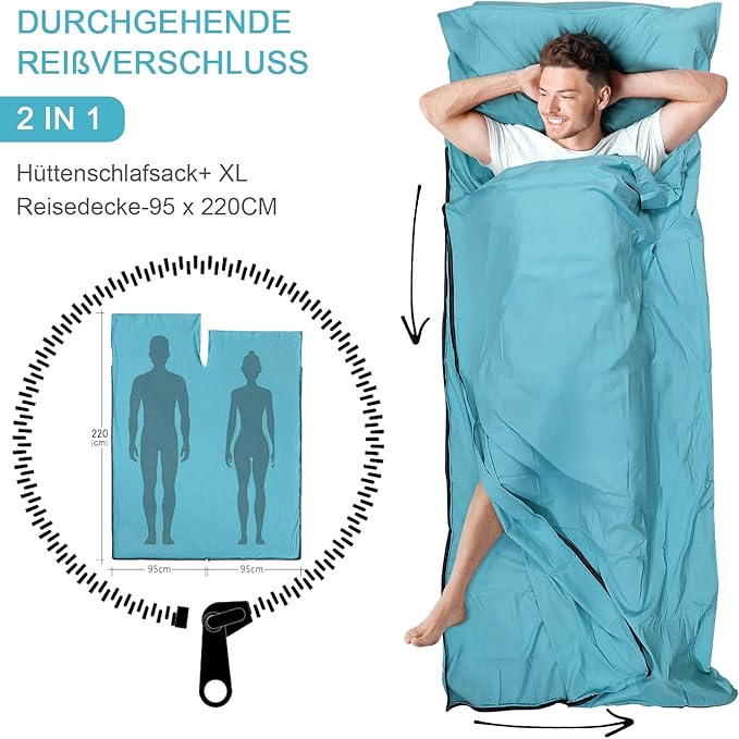 - PERFECTLY SIZED - Immerse yourself in comfort with our thoughtfully designed liner. Measuring an impressive 86.6 inches (220cm) in length and 37.4 inches (95cm) in width, it offers ample room for even taller individuals without excess material that would make you uncomfortable. To top it off, we’ve included a pillow pocket for added convenience. When traveling, slide in your own pillow for a more hygienic and comfortable slumber.