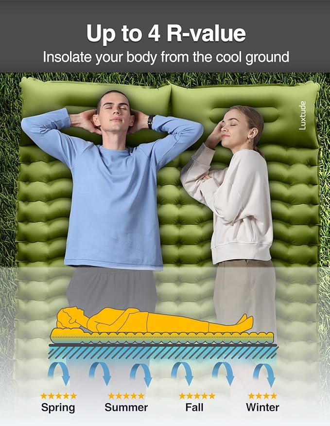 Luxtude Sleeping Pad for Camping, 4" Thick Queen Camping Mattress, Double Sleeping Pad for 2 Person, Inflatable Camp Mattress with Foot Pump, Air Mat for Adults - Backpacking/Car Traveling/Hiking