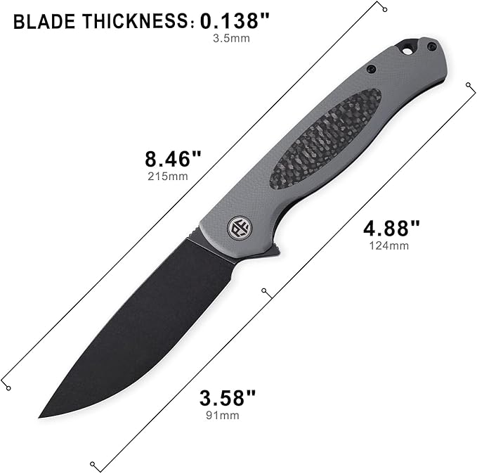 - 【EDC Tool Knife】Total Length Size is 8.46", Blade Length is 3.58", Blade thickness is 0.138".