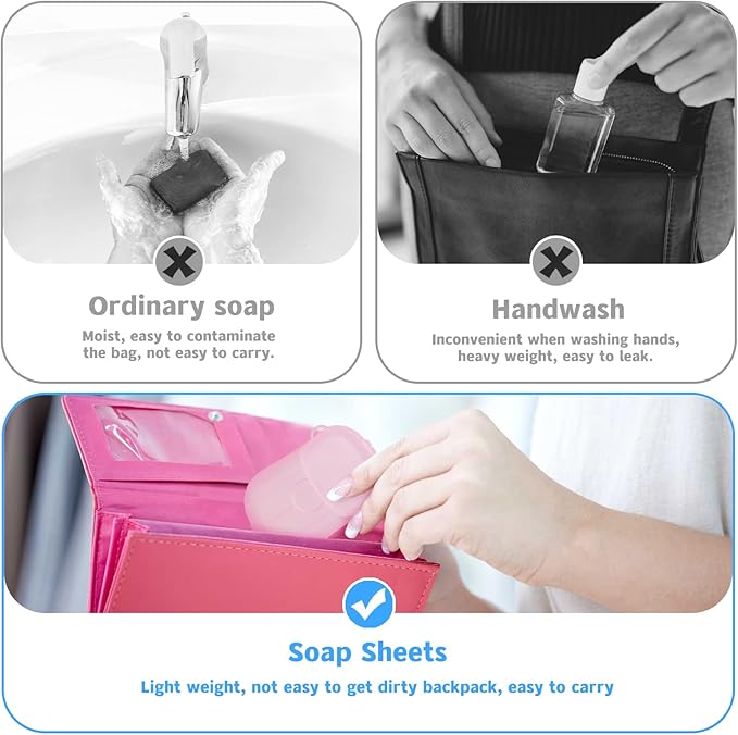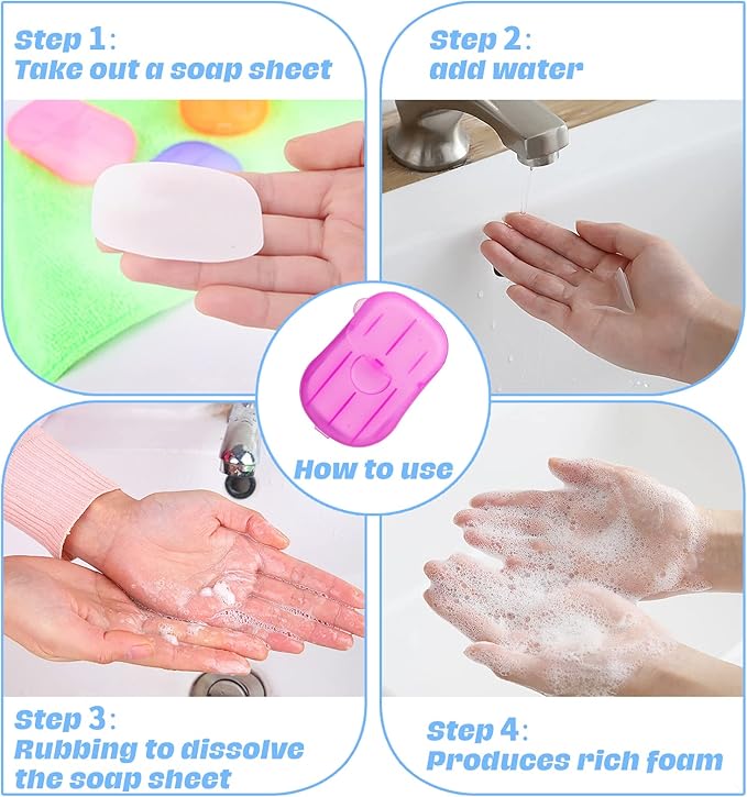 - 【Quality materials】Soap sheets are made from soluble natural materials that dissolve quickly in contact with water and contain effective detergency factors that easily remove dirt, ideal for hand washing. Gentle on the skin, safe for adults and children; naturally moisturising and effective in preventing dry hands. Can be used on all parts of the body. The soap sheets will not melt at room temperature, do not leave them in a hot environment.