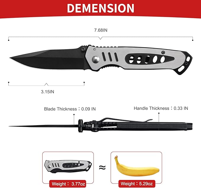 - DURABLE: Blade is 7cr17mov stainless steel has balance of hardness. And blade length 3.15 inches, 4.4 inches when folded, net weight 3.77 ounce.