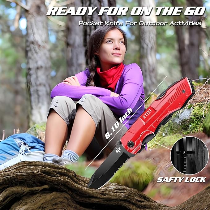 - 【Perfect Stocking Stuffer】Our multi-tool features a compact and stylish design that easily fits in a pocket or sock. Whether in life or work, it is a powerful and practical multitool. Also a cool gift for women who love outdoor survival, adventure, hiking, camping or backpacking.