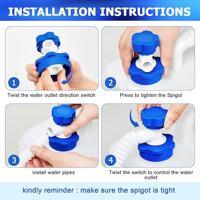 - Leak Proof Spigot: the camping water container has good sealing, easy on or off spigot design allows for quick control of water flow, easily to avoid leakage and spills even when transporting over rough terrain
